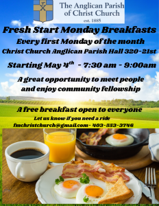 Fresh Start Monday Breakfasts- Starting May 4th – 7:30am – 9:00am